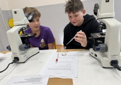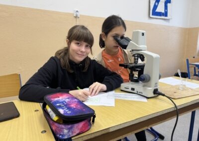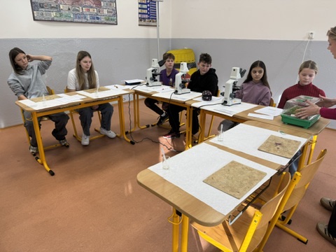 Návštěva začala ve velkém stylu: s profesionálními mikroskopy! Šesťáci měli poprvé možnost vidět rostlinnou buňku v takovém detailu, jaký jim běžné školní vybavení neumožní.