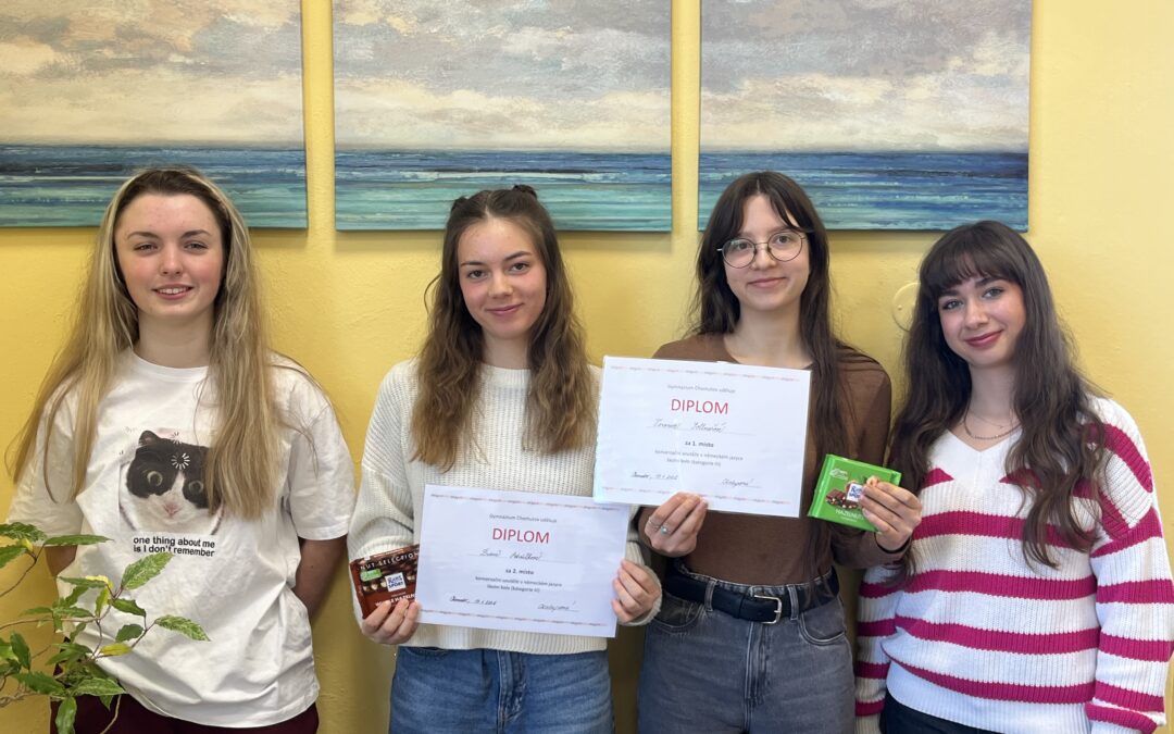 Dne 19.01. 2026 se na naší škole uskutečnila ústní část školního kola konverzační soutěže v německém jazyce kategorie III. 1. místo obsadila Veronika Sollnařová, 2. místo Diana Petržílková a 3. místo Marie Anděla Kučerová. Žáci, kteří se umístili na prvních dvou místech, budou naši školu reprezentovat v okresním kole soutěže dne 19.2.2026. Všem účastníkům děkujeme za účast a vítězům blahopřejeme!