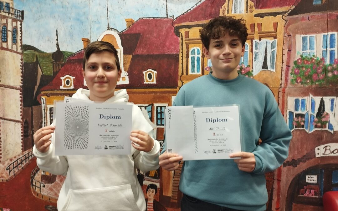 1. 4. 2026 se konalo okresní kolo Matematické olympiády v kategorii Z8. Naší školu reprezentovali dva studenti z 1.F. Vojtěch Schmidt obsadil druhé místo a Jiří Chudý skončil na třetím místě. Moc gratulujeme