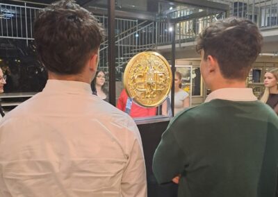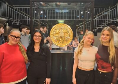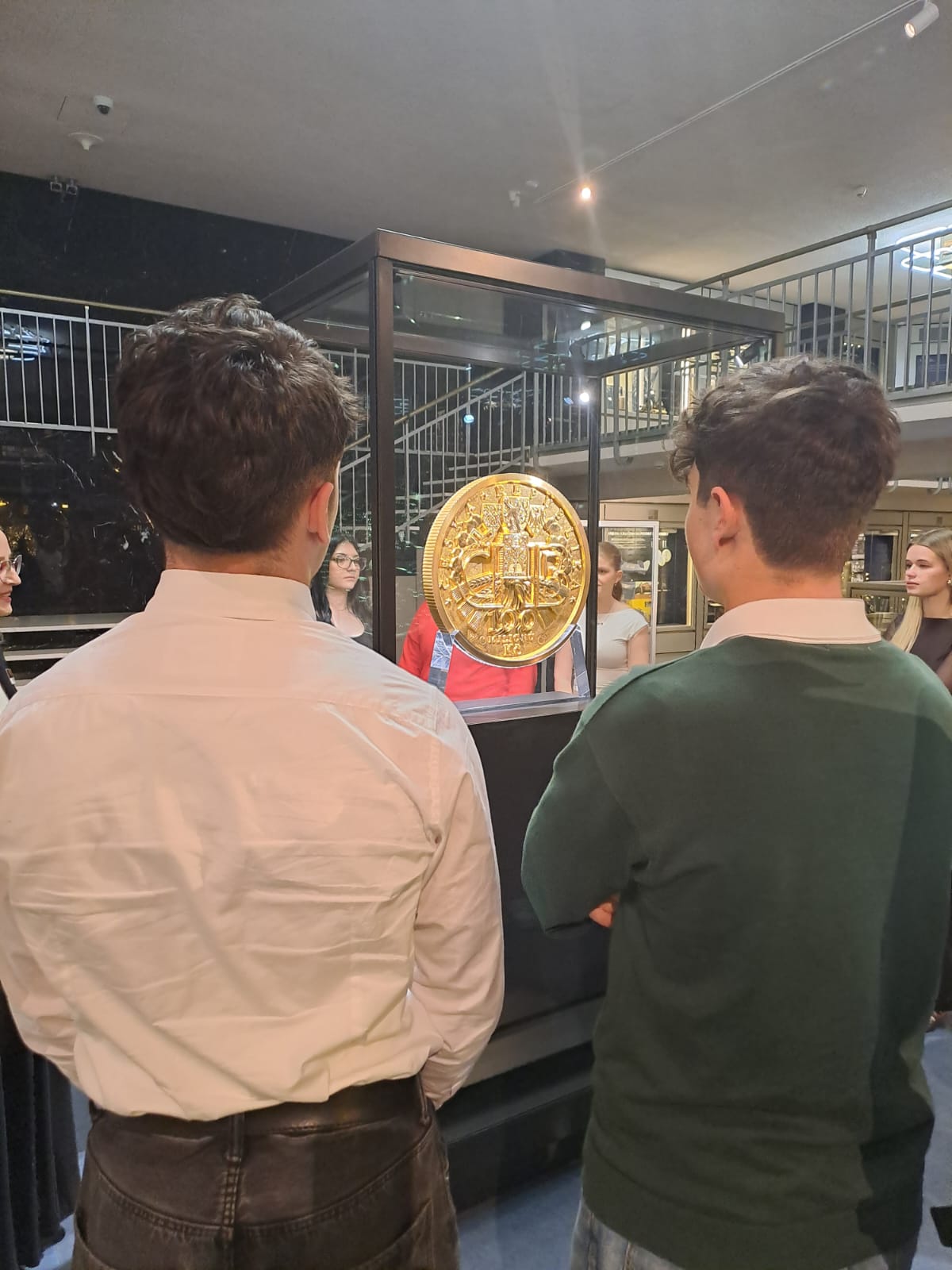 Dne 7. 4. se žáci třetích ročníků zúčastnili exkurze do České národní banky. Na programu byly dvě přednášky s odlišným zaměřením. První přednáška byla věnována současnému fungování finančního systému. Druhá část se zaměřila především na historii peněz. Studenti se dozvěděli řadu zajímavých informací z praxe. Pozornost byla věnována například problematice padělků a jejich rozpoznávání. Studenti si také mohli vyzkoušet interaktivní vyrovnávání inflace pomocí zvyšování nebo snižování úrokových sazeb. Přednášky byly srozumitelné a přínosné. Exkurze tak představovala zajímavé doplnění výuky.